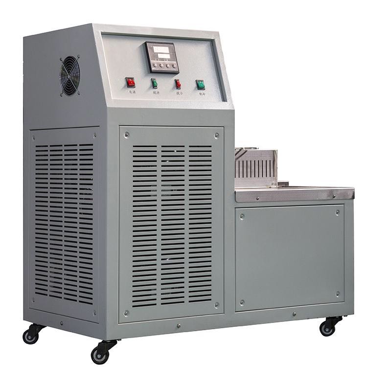 本設備采用復疊式壓縮機制冷技術(shù),利用熱平衡原理及循環(huán)攪拌方式,達到對試樣的自動均勻類卻、恒溫。
